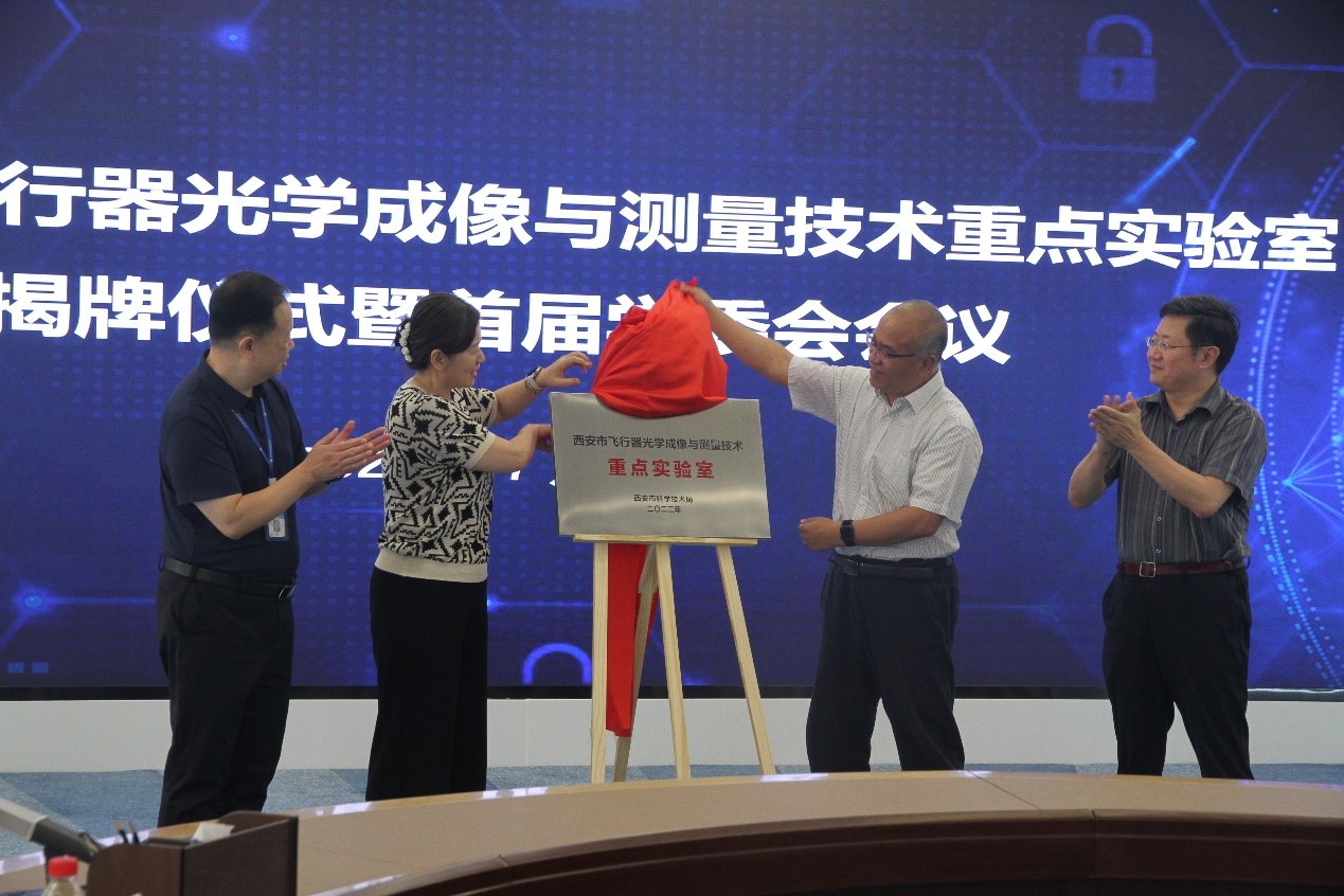 2023年7月7日,西安市飞行器光学成像与测量技术重点实验室(简称“重点实验室”)揭牌仪式暨首届学委会会议在9323彩票举行。西安市科技局成果转化与校地合作处处长解中,西安光机所党委书记、副所长孙传东,重点实验室主任曹剑中、学委会主任周军以及学委会委员,西安光机所相关科技管理人员约30人参加会议。会议由重点实验室执行主任陈卫宁和学委会主任周军分阶段主持。
