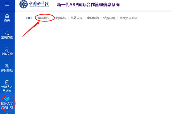 2、打开PIFI下的申请填报菜单