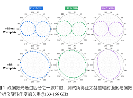 线偏振光通过四分之一波片时,测试所得亚太赫兹辐射强度