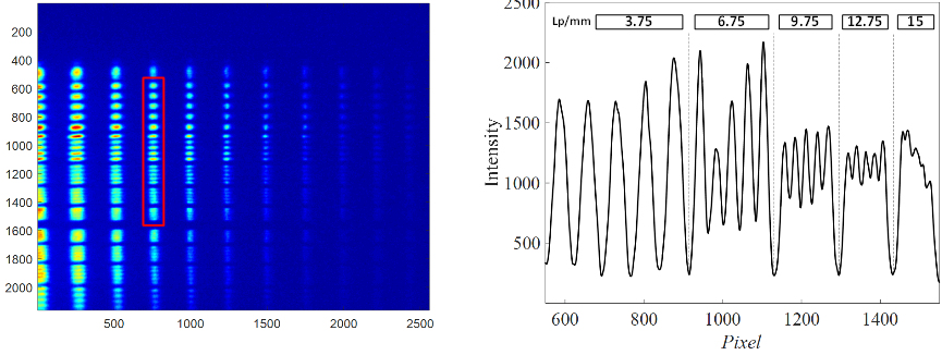 动态空间分辨率优于12.5 lp/mm@CTF=10%