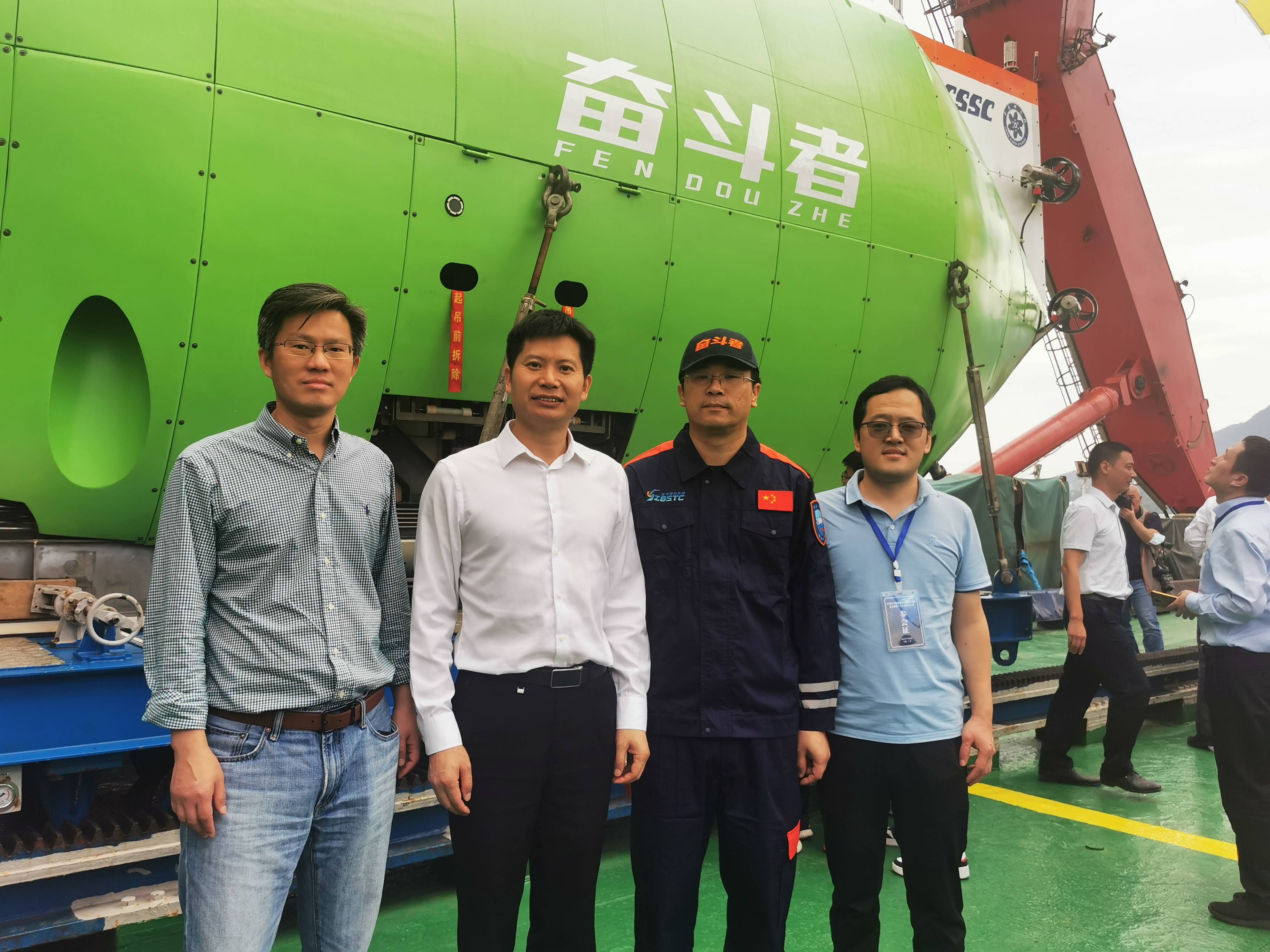 2020年11月28日,“奋斗者”号全海深载人潜水器圆满完成万米深潜海试任务,返回三亚。西安光机所副所长谢小平、海洋光学与技术研究室主任吴国俊、光子网络技术研究室副主任汪伟参加接船仪式,欢迎我所李鹏勇士凯旋,他参与“奋斗者”号海试全过程并在此次深潜任务出海保障工作中表现非常出色,保证万米洋底电视直播顺利进行。